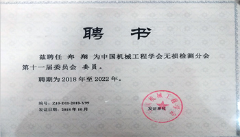 亞泰光電鄭總當(dāng)選中國機械工程學(xué)會無損檢測分會第十一屆委員會委員