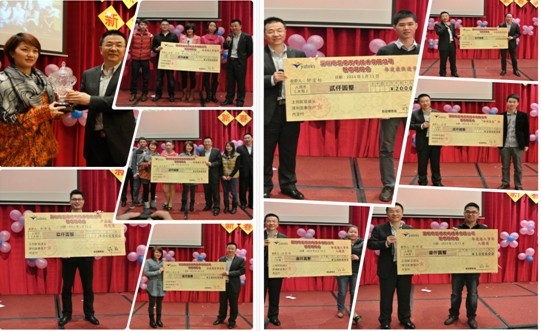 本屆年會(huì)由總經(jīng)辦劉春龍負(fù)責(zé),各部門(mén)負(fù)責(zé)人做了關(guān)于2013年各部門(mén)工作總結(jié)報(bào)告以及2014年各部門(mén)工作規(guī)劃,接著公司總經(jīng)理鄭翔做了2013年工作總結(jié)報(bào)告,并對(duì)2014年公司發(fā)展做出了全面規(guī)劃。各部經(jīng)理宣讀了獲得2013年公司優(yōu)秀員工名單,并號(hào)召全公司同事向他們學(xué)習(xí)。隨后,總經(jīng)理親自為2013年對(duì)公司做出卓越貢獻(xiàn)的員工及團(tuán)隊(duì)頒發(fā)獎(jiǎng)金,已獎(jiǎng)勵(lì)他們過(guò)去一年的取得的成果 。 年會(huì)時(shí),同事們歡聚一堂,各種有趣的娛樂(lè)游戲?qū)⒛陼?huì)推向了高潮。