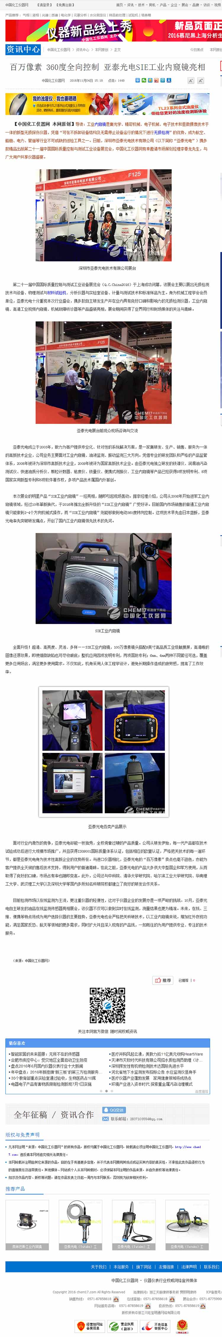 11月初,亞泰光電應(yīng)邀出席2016第二十一屆上海中國(guó)國(guó)際質(zhì)量控制與測(cè)試工業(yè)設(shè)計(jì)展覽會(huì),該展會(huì)目前是中國(guó)工業(yè)檢測(cè)領(lǐng)域中規(guī)模最大、歷史最久、范圍最廣的品牌展會(huì),亞泰光電攜自主研發(fā)生產(chǎn)的國(guó)產(chǎn)SIE百萬(wàn)像素超清工業(yè)內(nèi)窺鏡驚艷亮相本次展會(huì),參展期間,應(yīng)邀接受?chē)?guó)內(nèi)最早進(jìn)入儀器儀表行業(yè)的專(zhuān)業(yè)網(wǎng)站——化工儀器網(wǎng)《高端訪談》欄目專(zhuān)訪,《高端訪談》欄目是中國(guó)化工儀器網(wǎng)全新打造的核心欄目,旨在把握行業(yè)跳動(dòng)脈搏、全面報(bào)道名企動(dòng)態(tài),此次訪談節(jié)目在業(yè)內(nèi)外獲得了較好的傳播效果。