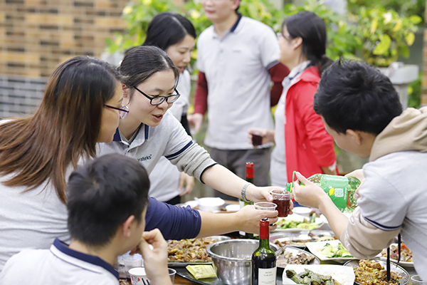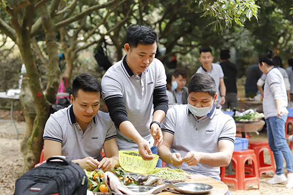 中午時(shí)分,年會(huì)開始了吃貨環(huán)節(jié),大家自己動(dòng)手、豐衣足食,各團(tuán)隊(duì)將自帶的食材及酒水、飲料等歸集一起準(zhǔn)備各自小組的午餐,各組隊(duì)成員有的切菜、有的洗菜,有的拾材,有的炒菜,一盤盤香噴噴、美味可口的家常菜西紅柿炒蛋、虎皮尖椒、年年有魚、肉沫茄子等美味可口的菜肴很快就做好并迅速被一掃而光,其樂融融,吃得好、喝得好,玩得好,好不熱鬧。