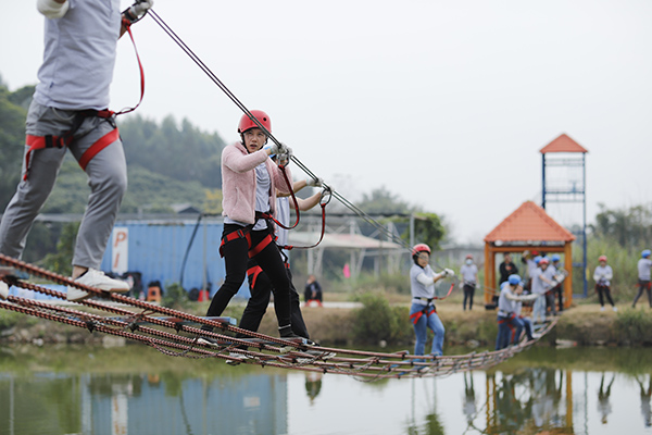 野炊結(jié)束午間休息后,年會(huì)進(jìn)入到下半場(chǎng),下午兩點(diǎn)開始,所有隊(duì)員在教練的指導(dǎo)下抖擻精神、重新整裝再出發(fā),開始叢林穿越、高空溜索、飛奪瀘定橋等項(xiàng)目,隨著高空溜索、飛奪瀘定橋等項(xiàng)目的展開,各個(gè)小組發(fā)揮各自的優(yōu)勢(shì)努力完成每一個(gè)項(xiàng)目,每個(gè)項(xiàng)目的進(jìn)行和完成極大的鍛煉了團(tuán)隊(duì)成員的堅(jiān)強(qiáng)意志、增強(qiáng)了大家的團(tuán)隊(duì)凝聚力和整體向心力,同時(shí)每一個(gè)人也感受到了團(tuán)隊(duì)合作與溝通的重要性。