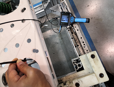 本項(xiàng)目需求引入自動(dòng)化檢測(cè)設(shè)備,用以檢測(cè)電氣開關(guān)機(jī)械擋卡安裝位置是否到位。主要是與客戶方試驗(yàn)并確認(rèn)亞泰內(nèi)窺鏡探頭拍攝位置,演示內(nèi)窺鏡直管3mm側(cè)視鏡頭拍攝效果,并確定最終內(nèi)窺鏡檢測(cè)實(shí)施方案。