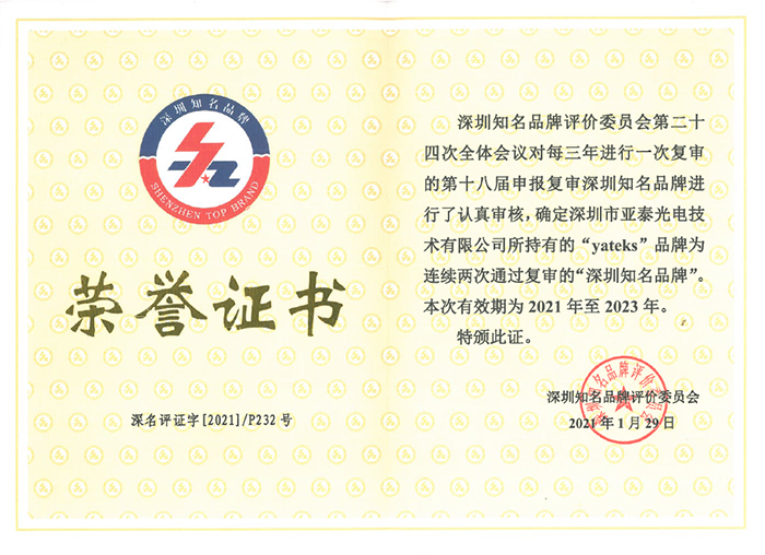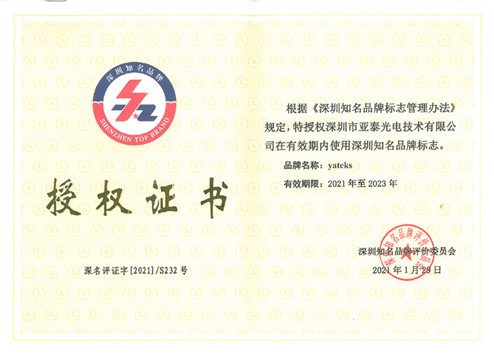 隨后,羅琪琳部長將標志著中國優(yōu)質品牌符號的“深圳知名品牌”證書及牌匾交到了市場相關負責人手上,這份承載著評委會對亞泰光電產品和服務質量水平充分肯定,與社會公眾對于亞泰光電品牌發(fā)展認可和期許的榮譽,將更加促進亞泰光電的發(fā)展進程和管理水平上升到更高、更新的臺階。
