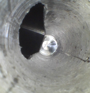客戶地處華南區(qū),主營手機、電池、電腦配件等相關(guān)配套部件,客戶方用內(nèi)窺鏡檢測的是其生產(chǎn)的鋁合金機加工件,用于手機后蓋壓模用,客戶生產(chǎn)手機后蓋時,會用到磨具,他們內(nèi)部稱鋁合金機加工件,上面交錯孔大小不一,主要用內(nèi)窺鏡看內(nèi)部的破孔處毛刺等情況。