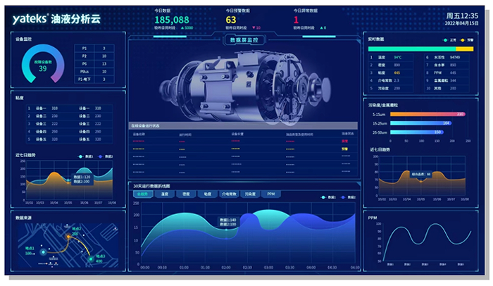 潤滑系統(tǒng)內(nèi)實時監(jiān)測潤滑油粘度、密度、水分、污染度、酸值、堿值等各項詳細(xì)理化指標(biāo),提前預(yù)知設(shè)備的潤滑狀態(tài)