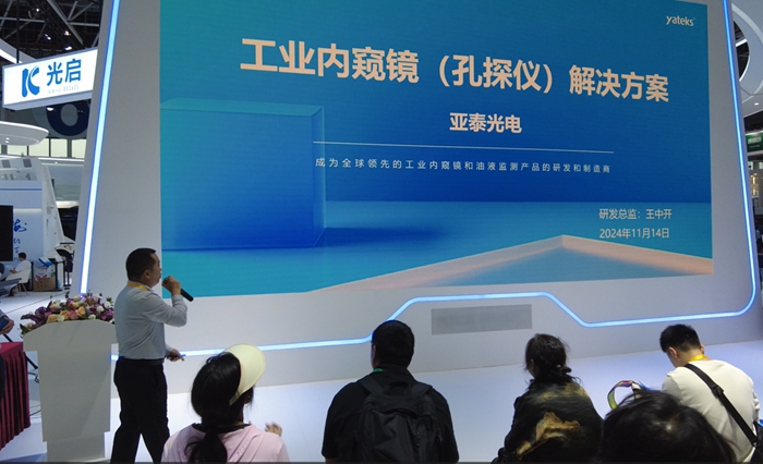 11月14日,亞泰光電繼續(xù)在航展現(xiàn)場舉辦了先進(jìn)檢測(cè)技術(shù)交流會(huì)。此次交流會(huì)聚焦于工業(yè)內(nèi)窺鏡(孔探儀)解決方案及在線油液監(jiān)測(cè)傳感器技術(shù)。公司研發(fā)總監(jiān)王中開先生再次登臺(tái),詳細(xì)介紹了亞泰光電在工業(yè)內(nèi)窺鏡領(lǐng)域的最新研究成果和解決方案。這些方案以雙百萬高清晰度、極細(xì)管徑、極近焦鏡頭等特點(diǎn),能夠滿足航空航天等不同行業(yè)客戶的多樣化需求。