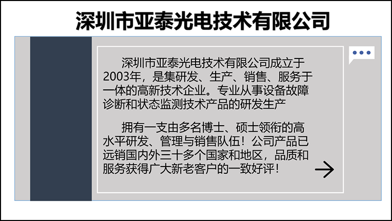 亞泰光電,國家高新技術企業(yè)和深圳知名品牌,10余年工業(yè)內窺鏡和油品分析儀研發(fā)、生產行業(yè)經驗,國內外知名企業(yè)合作供應商,產品優(yōu)惠熱線:13316911816(微信同號) 0755-86656096 0755-86656390 聯系我們獲取更多優(yōu)惠詳情,期待您的指導與交流!