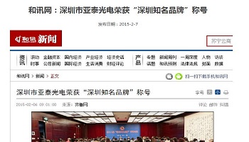 和訊網(wǎng):深圳市亞泰光電榮獲“深圳知名品牌”稱號