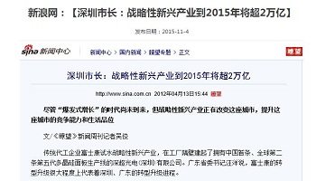 新浪網(wǎng):【深圳市長:戰(zhàn)略性新興產(chǎn)業(yè)到2015年將超2萬億】
