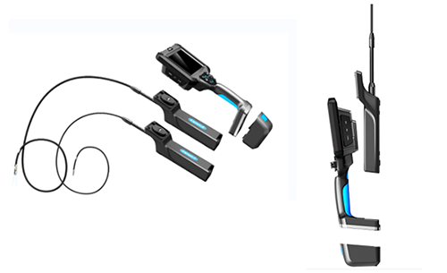 3、TIE三維內(nèi)窺鏡采用模塊化設(shè)計,可快速拆裝更換——觸摸屏和按鍵雙智能化操作設(shè)計以及符合人體工程學(xué)設(shè)計的手柄,便于握持和單手操作;大容量可拆卸充電的電池包,提供強力續(xù)航; 可更換的手柄,一主機可搭配多手柄。