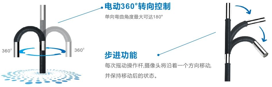 l自動(dòng)鎖定 精準(zhǔn)定位——亞泰專利, 步進(jìn)、快慢速調(diào)節(jié)和微調(diào)鎖定功能以及電動(dòng)360°轉(zhuǎn)向控制,最大單向220°彎曲角度。