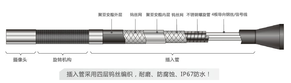 l插入管材質(zhì)——插入管材質(zhì)為四層鎢絲編織耐磨管,防水等級(jí)IP67,長(zhǎng)度可定制。